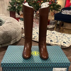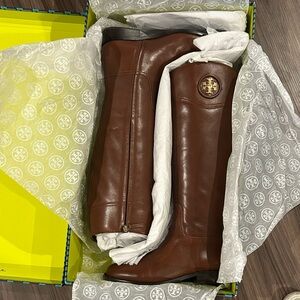 NIB Tory Burch Ashlynn Riding Boots - Venus Leather - Almond 203 - Style #30968