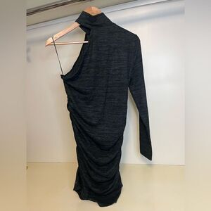 Heathered stretch fabric, the Electra minidress is designed with a single long sleeve. Turtleneck Long sleeve Pullover style 60% polyester/35% viscose/5% spandex Machine wash