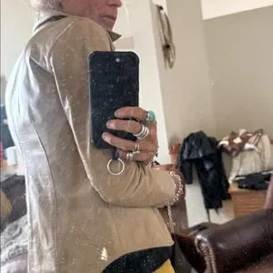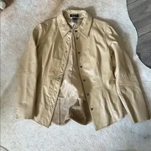 Frenchi Beige genuine Leather shirt Jacket shacket size small
