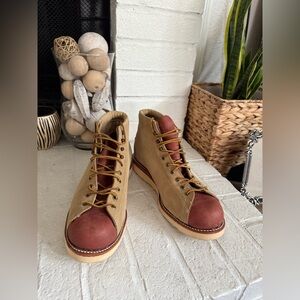 Chippewa Monkey Boots Suede Leather Size 10 ЕЕЕ Tan Maroon