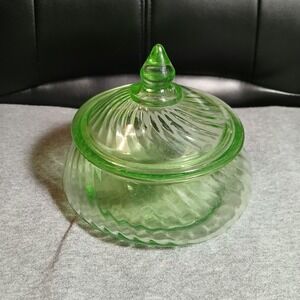 Vintage Anchor Hocking Uranium Swirl Glass Candy Dish, Green Depression Glass