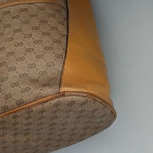 Vintage Gucci Micro GG Brown Tan Bucket Bag Crossbody Strap