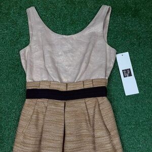 dolce & gabbana dress, D&G, luxury dress, gold tweed, designer cocktail dress, evening dress, italian designer, sleeveless dress, v back dress, upscale fashion, timeless style