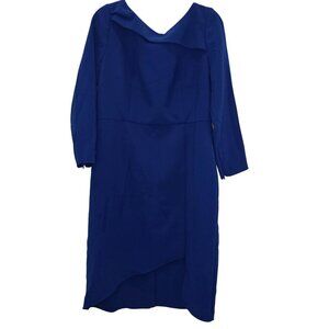 Sachin&Babi Blue Patrizia Bateau Asymmetrical Holiday Midi Sheath Dress Size 14