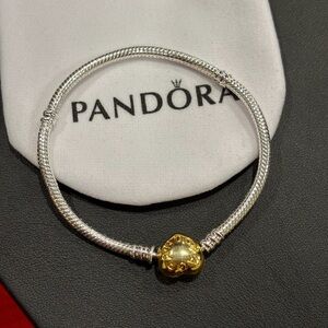 Pandora Silver Bracelet with Gold Plated Heart Closure. NWOT