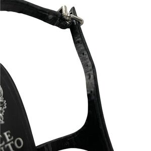 black leather sandals, Vince Camuto heels, thong heels, square toe heels, slingback sandals, kitten heel shoes, black dress sandals, evening heels, summer heels, classic heels, size 8.5 shoes