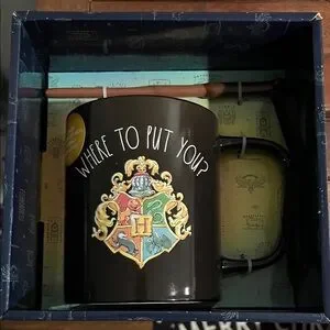 Enjoy your favorite beverage in this stylish black mug featuring the iconic Hogwarts crest. Perfect for any fan.