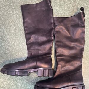 Free People Brooks Tall Black Chunky Combat Riding Boots Size 40 Knee-high