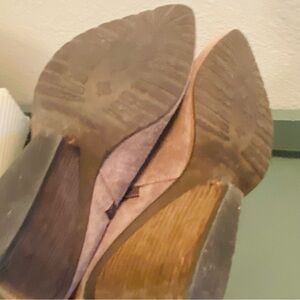 Suede leather beige booties with fringe on the side and small heel. Good condition with mind signs of wear. Size 9