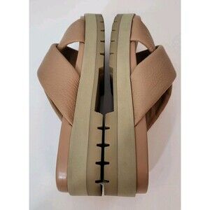 VIONIC Vesta Platform Sandals Womens 11 Tan Leather Lug Slide Thick Chunky
