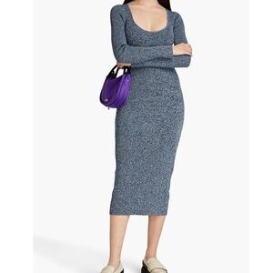 GANNI Melange Ribbed Knit Midi Dress - Placid Blue Marl
