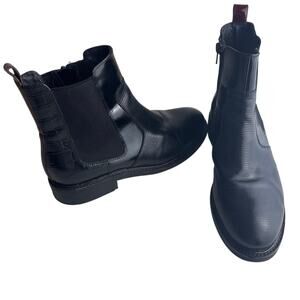 Jeffrey Campbell Edmond Black Lizard Chelsea Boot with Burgundy Accent Size 7.5