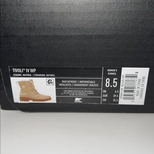 These are the NWT SOREL WOMENS TIVOLI IV WP IN CERAMIC/NATURAL SIZE 8.5. These are designed from waterproof leather so style meets function. They have a micro fleece lining for extra comfort and a memory foam footbed with a molded rubber sole for traction.
