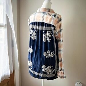 Free People Pink and Black Plaid Button-Down Shirt