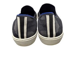 Rothy's slip-on sneakers features the iconic camouflage pattern in shades of grey and black offering a modern, edgy aesthetic that easily transitions from day to night. Perfect for busy errands, casual outings, or stylish travel.
