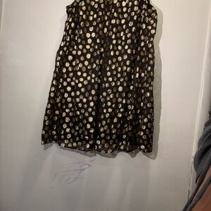 Chic midi dress with shimmering gold accents. Sleeveless design. Ideal for elegant outings.