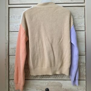 Chic GAP cardigan with a mix of cream, purple, and tan. Perfect for layering.