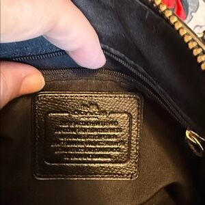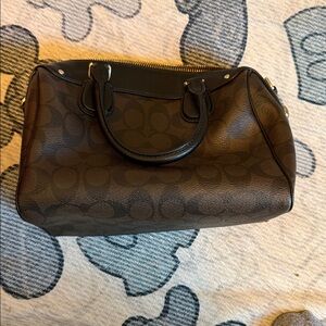 Stylish Coach satchel with signature pattern. Rich brown leather. Ideal for daily use. 9x6x5, no shoulder strap