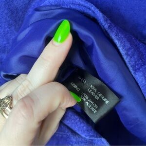 Vintage 90s Atlantic Beach Leather Coat Works Purple Suede Studded Jacket 16