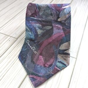 Oscar de la Renta Studio Vintage Metallic Abstract Wide Necktie in Jewel Tones