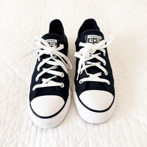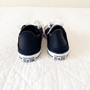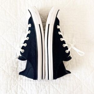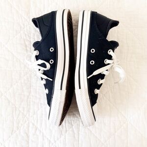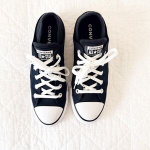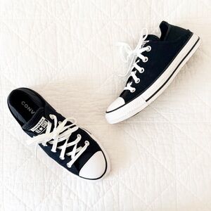 Classic black and white Converse sneakers with lace-up design.