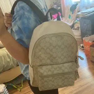 Coach Beige and White Backpack