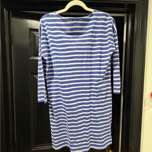 Patagonia size medium blue and white striped Seatoller dress with 3/4 sleeves.