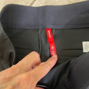 Please ask any questions before purchasing SPANX faux leather flare pants in black. High-waisted design with a flattering slim fit through the thigh and a dramatic flare at the hem. Perfect for a night out or a stylish daytime look.