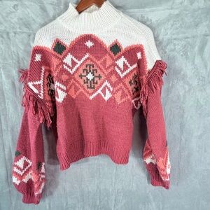 Rock and Roll Denim fringe southwest knit sweater Large