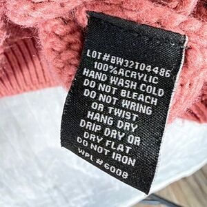 Soft chunky acrylic knit with fringe accents on the sleeves and across the chest.