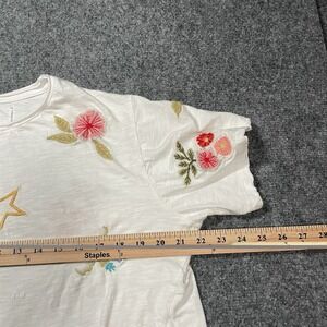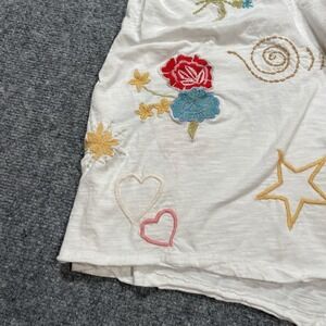 Kyla Seo Comfort Tee WHITE Size Medium Crewneck Embroidered Cotton Boho Handmade