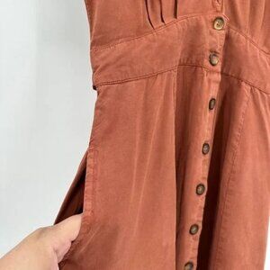 Quince Vintage Wash Tencel Button Front Dress with Tie Waist sz XL Terracotta