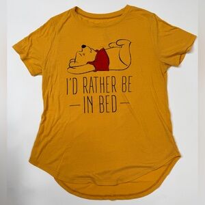 Disney Winnie the Pooh Short Sleeve PJ Top / Lounge Wear Graphic Tee. Orange / Yellow Gold (Mustard Gold) Color. Size: Juniors L 11 - 13. Could fit a Women’s XS or small. About 3/5 years old.