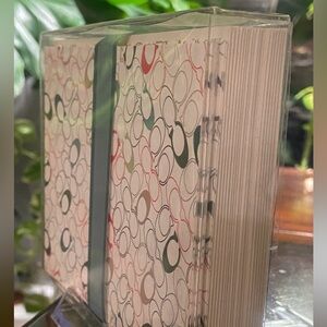 Featuring a repeating C logo pattern in a variety of colors on a cream background.