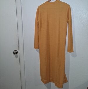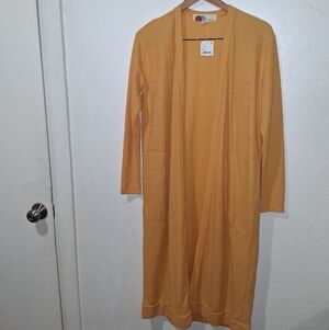 Brighten your wardrobe with this stylish yellow/orange long cardigan. Perfect for any occasion, this ensemble offers comfort and elegance. Unlined. Open.