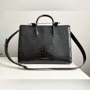 $995 Strathberry Croc Croco Embossed Leather Crossbody Tote Bag Purse Large GUC