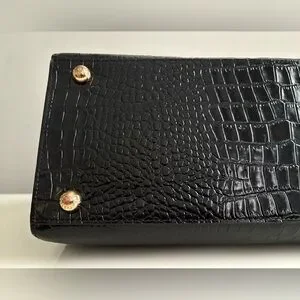Croc Embossed Black Leather