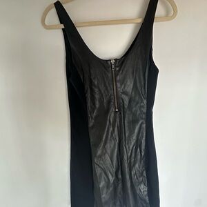 Chic black dress with leather like details. So fun for going out