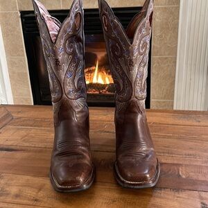 TONY Lama leather cowboy boots, in good condition decorative shaft.