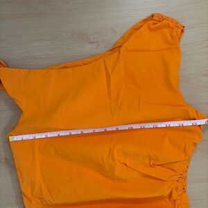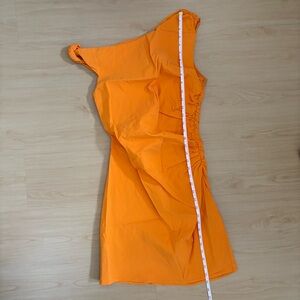 Stand out in this stunning orange one-shoulder dress. Perfect for any occasion, its vibrant color and sleek design make it a must-have in your wardrobe.