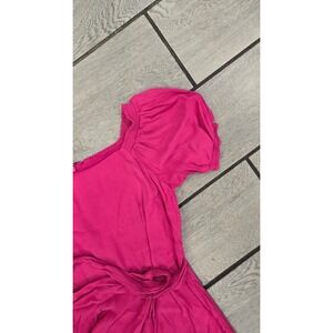 Maeve Anthropologie Pink Midi Dress Puff Sleeve Tie Waist Women's Size 6