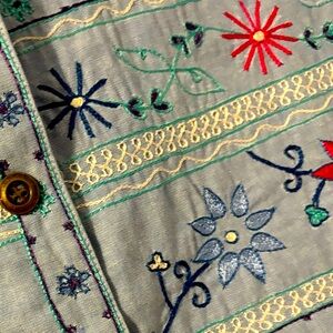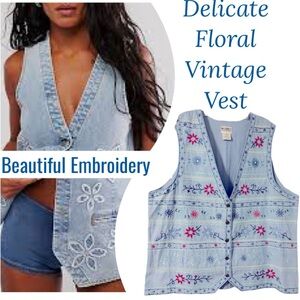 Vintage Embroidered Vest Chambray Denim Cottagecore Floral Koret Blue Size 1X