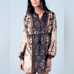 Twelfth Street Cynthia Vincent Chakra 100% Silk Long Sleeve Mini Dress, Size L