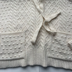 cream cable knit cropped hoodie with bobble details and a front pocket.