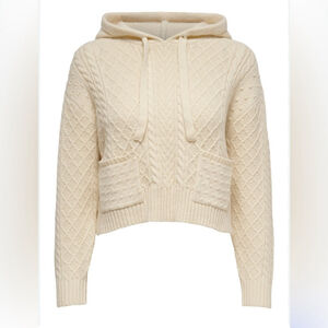 zara Cream Knit Cropped Hoodie sweater small