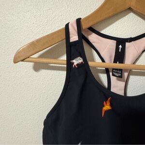 EUC The Upside Good Dinosaur Anna Sports Bra Navy Mesh Racerback Medium Impact
