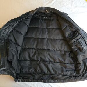 Perry Ellis Portfolio Black Insulated Leather Jacket Removeable Down Liner