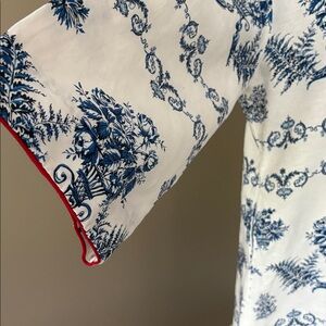 New Sachin + Babi Alyssa Caftan Indigo/Ivory Beaded Red Garland Size L
