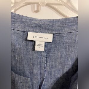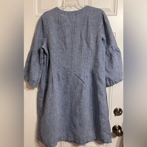 J Jill Love Linen Dress Blue Sheath Tunic 3/4 Bell Sleeves Pockets Women’s L