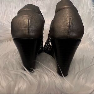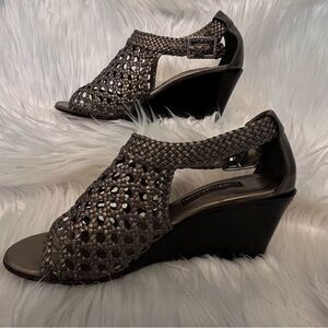 Brighton Gray Pewter Woven Wedge "REALM" Sandals Buckle Closure Women’s Sz 8.5